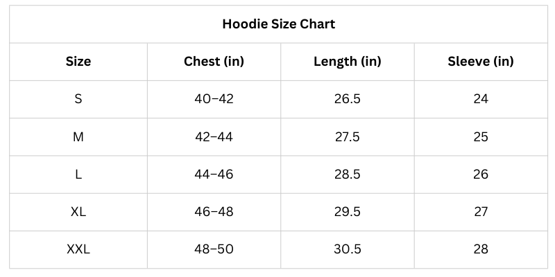Size Chart (Inches):