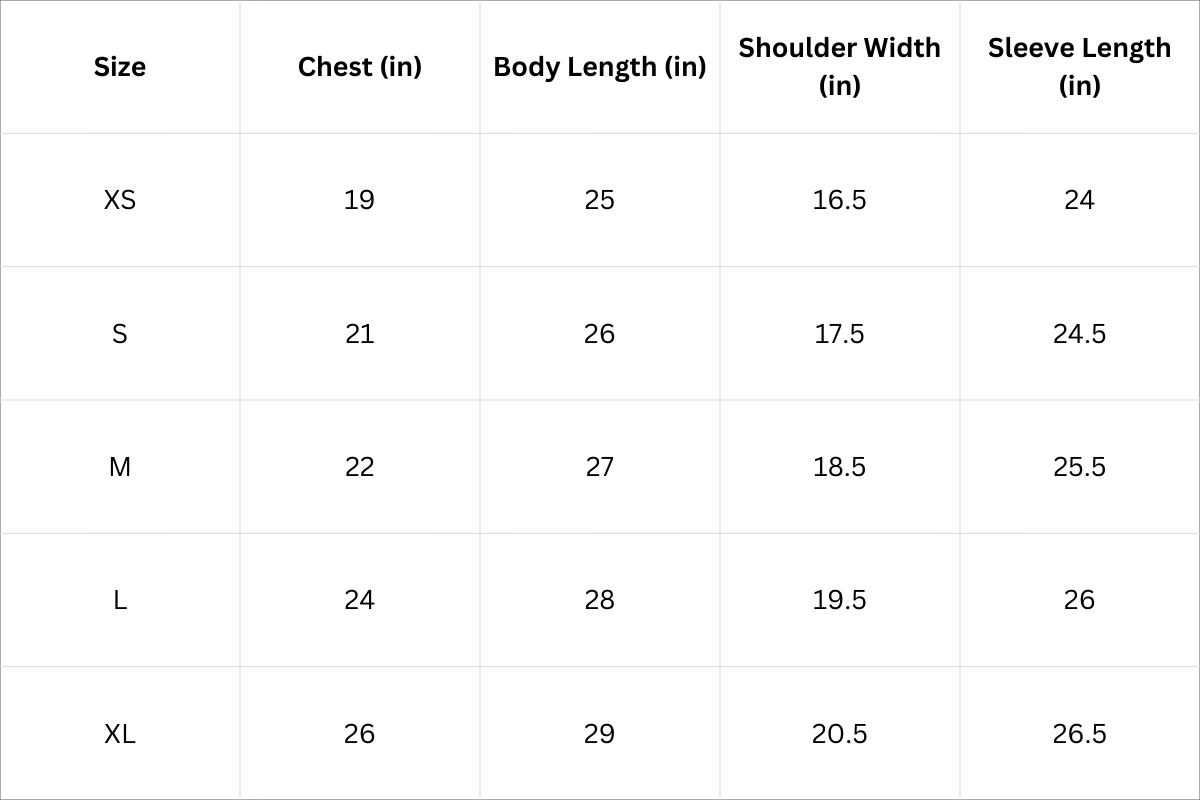 Size Chart (Inches):