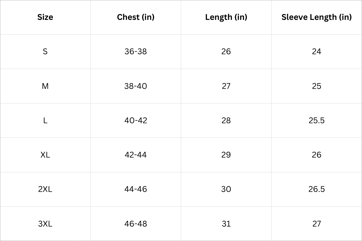 Size Chart (Inches):